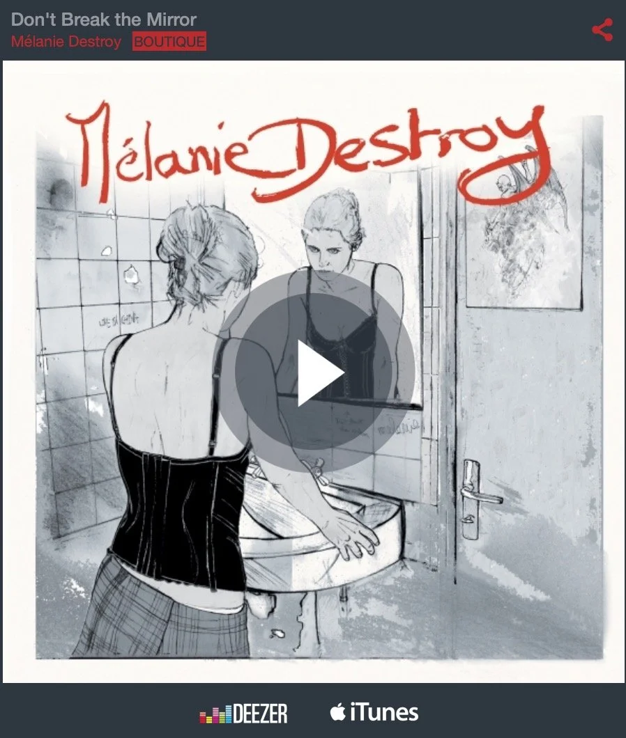 A l’écoute des titres de Mélanie DESTROY, on comprend que ses doutes exaspérés ont dissimulé une profonde maturité, ses textes poétiques ou révoltés, son rock ondoyant et versatile qui ne ressemble qu’à elle, Mélanie Destroy l’intemporelle surprend et requiert du temps, celui pour comprendre.